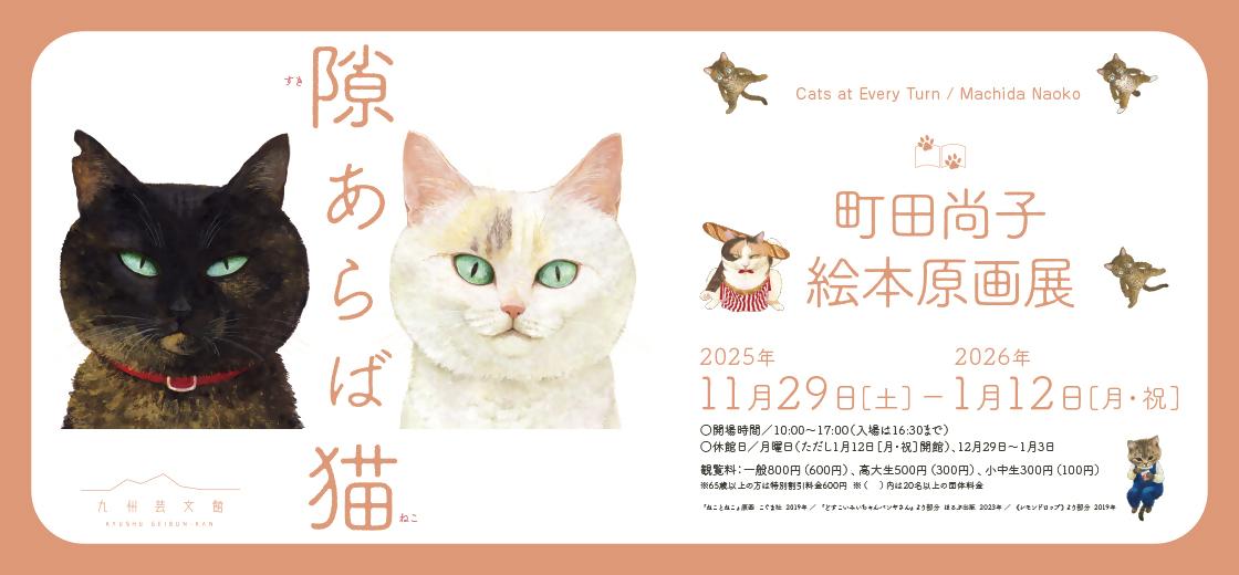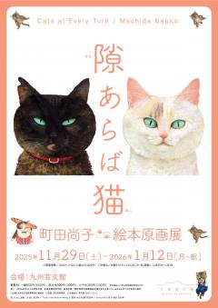 【開催予定】隙あらば猫 町田尚子 絵本原画展- 『ネコヅメのよる』『なまえのないねこ』『ねこはるすばん』などの代表作をはじめ、デビュー作から最新作までの絵本原画や装画約280点を、スケッチなどの貴重な制作資料とあわせて紹介します。また、本展覧会のために、九州芸文館を題材に描き下ろした作品も展示します。是非お越しください。