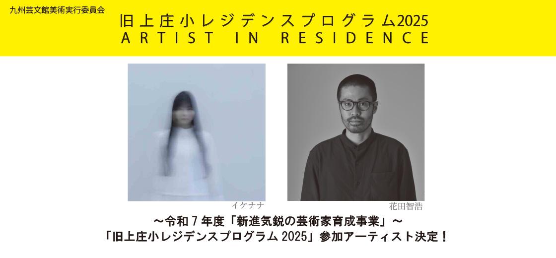 旧上庄小レジデンスプログラム2025 参加アーティスト決定!- 福岡県では、文化芸術分野における若手作家の支援の一環として、みやま市の廃校(旧上庄小学校)を制作スタジオとして活用した滞在型プログラムを実施しています。この度、福岡県ゆかりの新鋭の芸術家を対象とした公募を行い、厳正なる選考の結果、イケナナさん、花田智浩さん2名の参加が決定いたしました。11月より約3ヵ月間の滞在制作を開始し、リサーチ活動や作品の制作をします。また来年2026年の2月には九州芸文館でのレジデンスの成果展を予定しています。ぜひ楽しみにお待ちください!