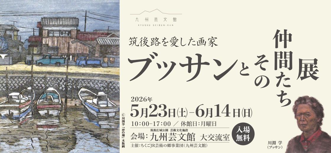 【開催予定】筑後路を愛した画家 ブッサンとその仲間たち展- 佐賀大学教育学部特設美術工芸科を卒業後、大川工業高校(現・大川樟風高校)で定年まで教鞭をとった川渕学氏の遺作展。油彩・水彩・パステル・木版画・彫塑・川柳など191点と、その仲間たちの作品25点を展示します。身近なモチーフに込められた、川渕氏の人情と郷土愛にあふれた作品の数々をお楽しみください。