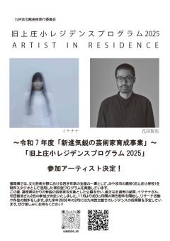 旧上庄小レジデンスプログラム2025 参加アーティスト決定!- 福岡県では、文化芸術分野における若手作家の支援の一環として、みやま市の廃校(旧上庄小学校)を制作スタジオとして活用した滞在型プログラムを実施しています。この度、福岡県ゆかりの新鋭の芸術家を対象とした公募を行い、厳正なる選考の結果、イケナナさん、花田智浩さん2名の参加が決定いたしました。11月より約3ヵ月間の滞在制作を開始し、リサーチ活動や作品の制作をします。また来年2026年の2月には九州芸文館でのレジデンスの成果展を予定しています。ぜひ楽しみにお待ちください!