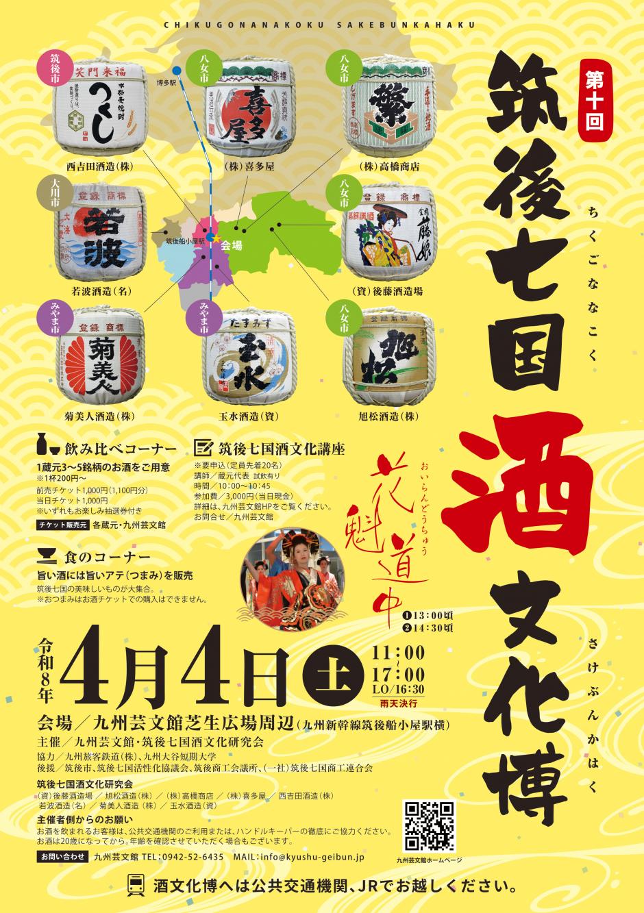 【主催】九州芸文館、筑後七国酒文化研究会/(資)後藤酒造場、旭松酒造(株)、(株)高橋商店、(株)喜多屋、西吉田酒造(株)、若波酒造(名)、菊美人酒造(株)、玉水酒造(資)