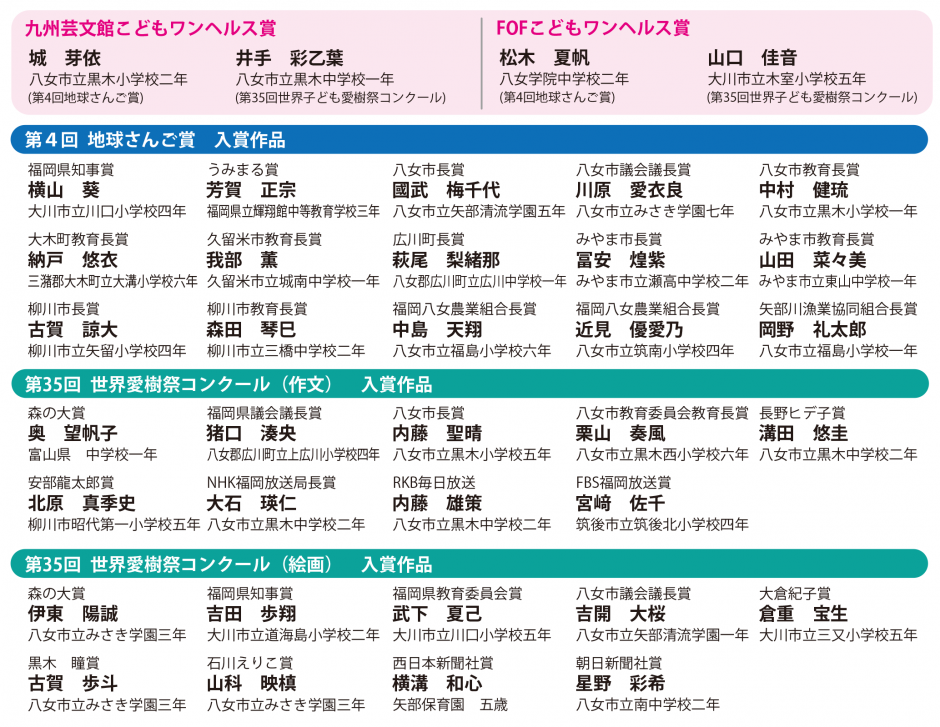 第4回地球さんご賞、第35回世界ども子愛樹祭コンクールの応募作品の中から「こどもワンヘルス賞」に選ばれた方を表彰します。